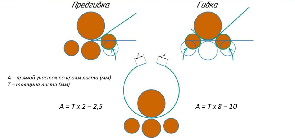- Требования к точности: 4-х валковые станки обеспечивают меньший прямой участок на краю листа (рис. 1) и более высокую точность гибки благодаря надежной фиксации заготовки.