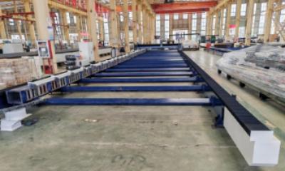 Направляющие оси Y разделена на левую и правую стальные конструкции. Основание разделено на несколько секций с каждой стороны, которые среплены прямоугольными трубами большого сечения, термообработаны, выполнена механическая обработка и, наконец, соединены встык.