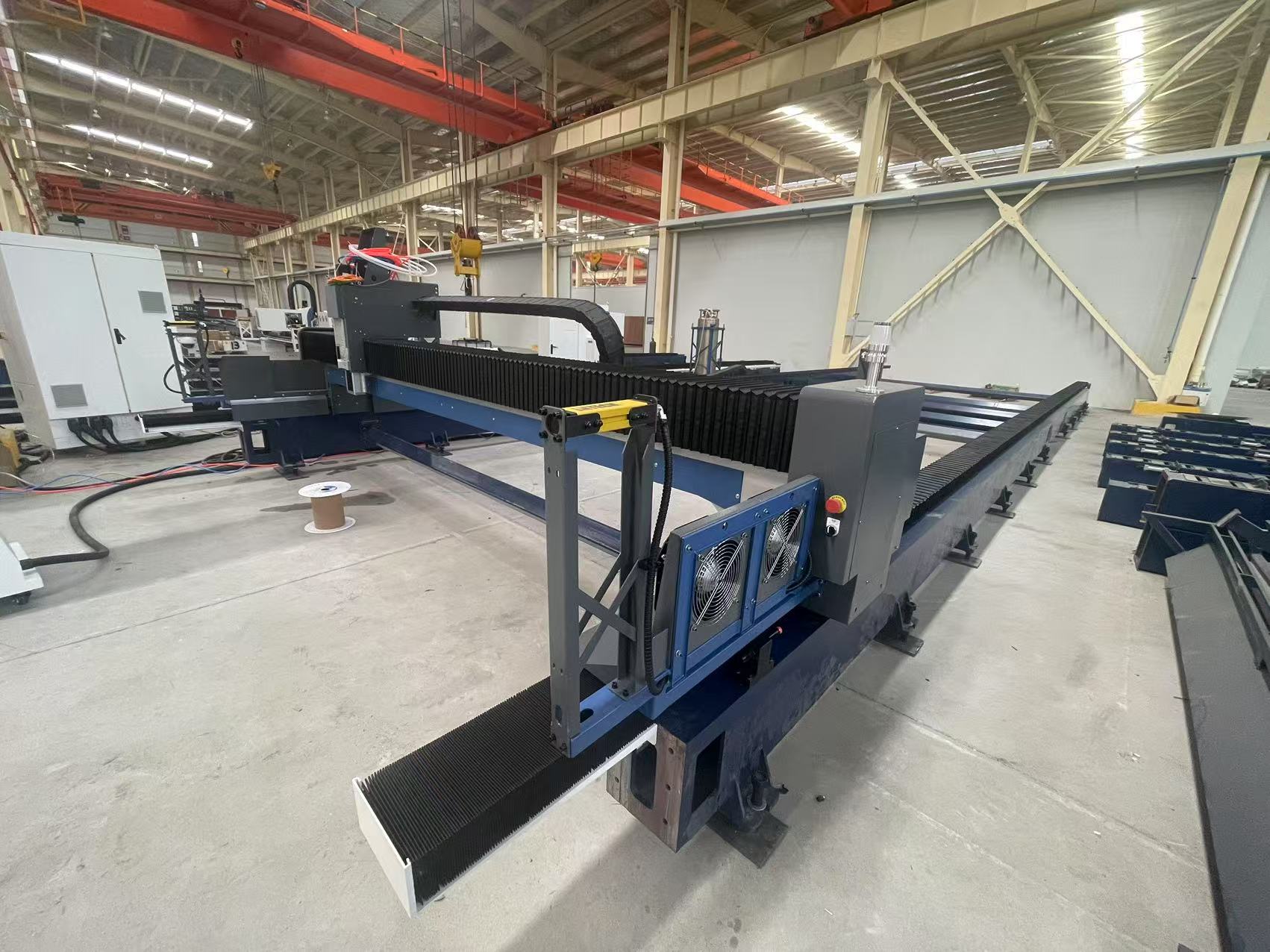 Обеспечивает гибкость при работе со сверх широкоформатными толстыми листами, формат можно настроить по требованию; станина и рабочий стол спроектированы отдельно, чтобы обеспечить высокие динамические характеристики станка и увеличить срок службы станка.